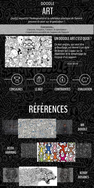 Ce mot anglais, qui veut dire gribouillage, est donné à un style de dessin qui s'appui sur la répétition et le remplissage de l'espace d'un support.