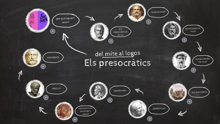 Busquen donar explicació irracional de la realitat. Els presocràtics van ser els primers pensadors que van intentar donar una explicació racional sobre el món físic i no la van explicar a partir de mites sobre el perquè del que ens envolta (Pas del mite al logos). l'Arkhé: és la manera com tenien els presocràtics d'explicar la realitat. A més, era un element primordial que donen origen a la realitat.