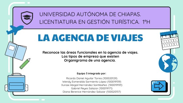 Reconoce las áreas funcionales en la agencia de viajes.Los tipos de empresa que existenOrganigrama de una agencia.
