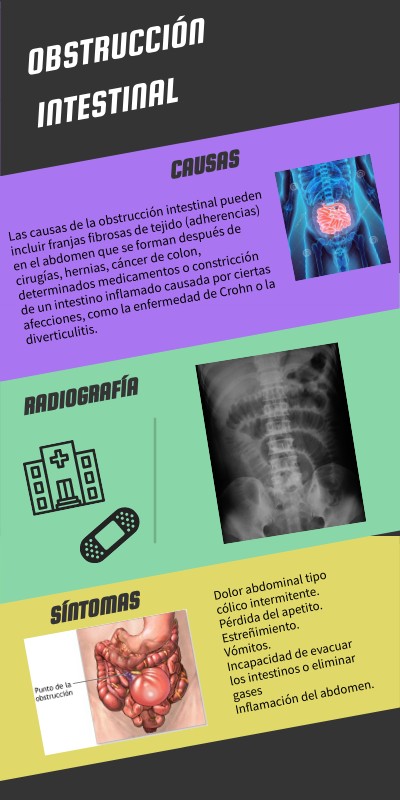 Las causas de la obstrucción intestinal pueden incluir franjas fibrosas de tejido (adherencias) en el abdomen que se forman después de cirugías, hernias, cáncer de colon, determinados medicamentos o constricción de un intestino inflamado causada por ciertas afecciones, como la enfermedad de Crohn o la diverticulitis.