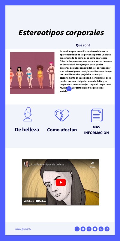 Es una idea preconcebida de cómo debe ser la apariencia física de las personas paraes una idea preconcebida de cómo debe ser la apariencia física de las personas para encajar correctamente en la sociedad. Por ejemplo, decir que las personas delgadas son saludables, es responder a un estereotipo corporal, lo que tiene mucho que ver también con los prejuicios so encajar correctamente en la sociedad. Por ejemplo, decir que las personas delgadas son saludables, es responder a un estereotipo corporal, lo que tiene mucho que ver también con los prejuicios sociales