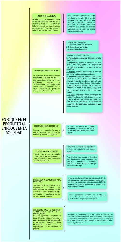 3 etapas de la evolución: 1- Orientación hacia el producto 2- Orientación a las ventas 3- Orientación al mercado