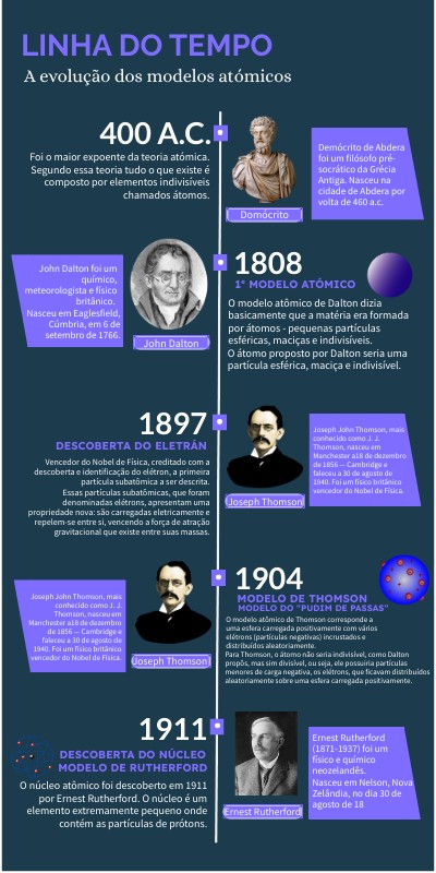 Para Thomson, o átomo não seria indivisível, como Dalton propôs, mas sim divisível, ou seja, ele possuiria partículas menores de carga negativa, os elétrons, que ficavam distribuídos aleatoriamente sobre uma esfera carregada positivamente.