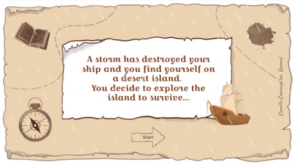 A storm has destroyed your ship and you find yourself on a desert island. You decide to explore the island to survive...