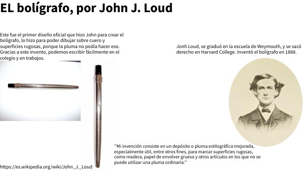 Jonh Loud, se graduó en la escuela de Weymouth, y se sacó derecho en Harvard College. Inventó el bolígrafo en 1888.