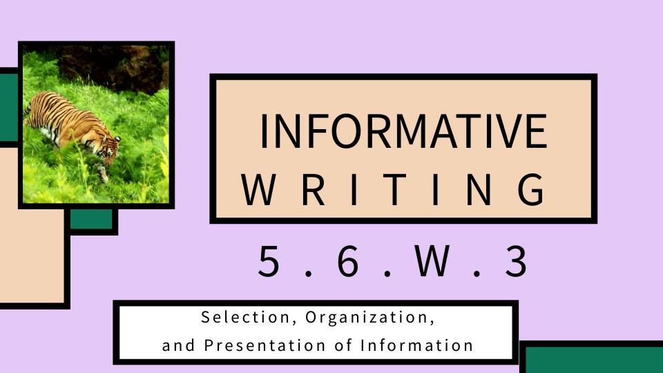 - Informative Writing Topic Selection, Organization, and Presentation of Information Education Presentation Purple and Green Illustrated Style
