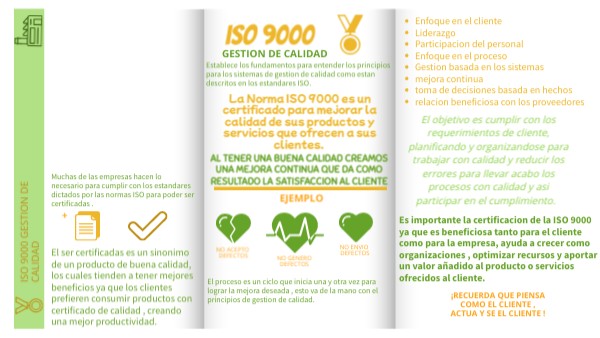 La Norma ISO 9000 es un certificado para mejorar la calidad de sus productos y servicios que ofrecen a sus clientes.