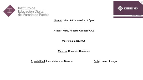 Alumna: Alma Edith Martínez López Asesor: Mtro. Roberto Gauosso Cruz Matricula: 23cl01096 Materia: Derechos Humanos Especialidad: Licenciatura en Derecho Sede: Huauchinango