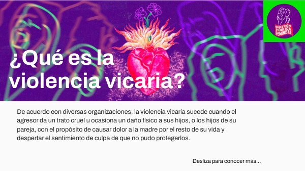 De acuerdo con diversas organizaciones, la violencia vicaria sucede cuando el agresor da un trato cruel u ocasiona un daño físico a sus hijos, o los hijos de su pareja, con el propósito de causar dolor a la madre por el resto de su vida y despertar el sentimiento de culpa de que no pudo protegerlos.