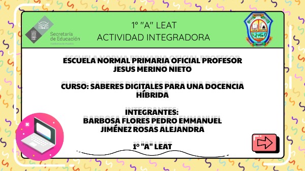 Escuela normaL primaria oficial profesor jesus merino nieto curso: saberes digitales para una docencia híbrida integrantes: Barbosa Flores Pedro EMMANUEL JIMÉNEZ ROSAS ALEJANDRA 1° "A" LEAT