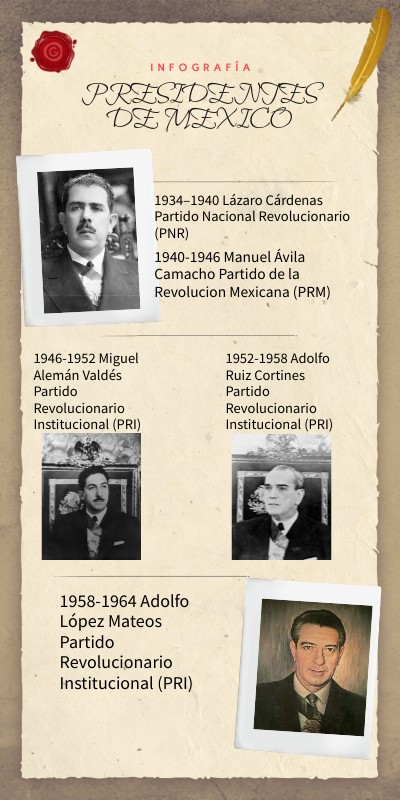 1940-1946 Manuel Ávila Camacho Partido de la Revolucion Mexicana (PRM)