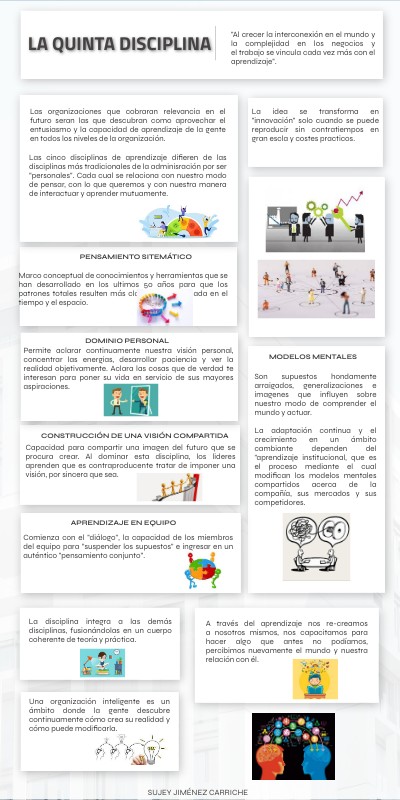 Las cinco disciplinas de aprendizaje difieren de las disciplinas más tradicionales de la adminisración por ser “personales". Cada cual se relaciona con nuestro modo de pensar, con lo que queremos y con nuestra manera de interactuar y aprender mutuamente.
