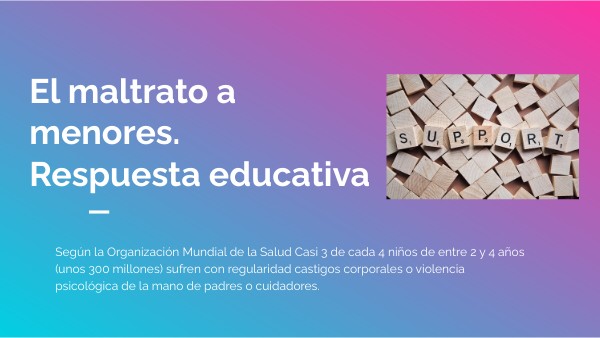 Según la Organización Mundial de la Salud Casi 3 de cada 4 niños de entre 2 y 4 años (unos 300 millones) sufren con regularidad castigos corporales o violencia psicológica de la mano de padres o cuidadores.