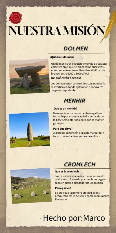 Los dolmen están construidos con grandes lo- sas verticales donde enteraban a cadáveres de gente importante.
