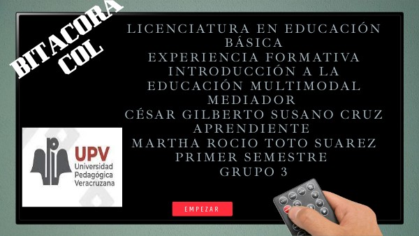 LICENCIATURA EN EDUCACIÓN BÁSICA EXPERIENCIA FORMATIVA INTRODUCCIÓN A LA EDUCACIÓN MULTIMODAL MEDIADOR CÉSAR GILBERTO SUSANO CRUZ APRENDIENTE MARTHA ROCIO TOTO SUAREZ PRIMER SEMESTRE GRUPO 3