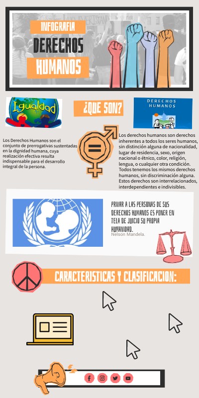 inherentes: Proceden de la naturaleza humana. Universales: Generales a todas las personas sin excepción. Interdependientes: La validez de un derecho conlleva la validez de otros. Indivisibles: Ni uno de ellos puede gozarse al margen de otro, todos los derechos son indispensables. Inalienables: Ninguna persona, ni el mismo individuo ni el Estado tienen la posibilidad de expropiar un derecho. Imprescriptibles: No hay extinción de derechos extinguen a través del tiempo. Incondicionales: Los derechos están condicionados a sus propios límites. Inviolables: No hay posibilidad de que los derechos sean violados o vulnerados.
