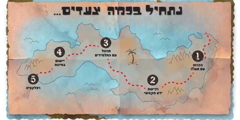 מערכת ה-iTest הינה רק האמצעי, לא המטרה. על התלמידים לרכוש תחילה את הידע המקצועי בגאורפיה - אדם וסביבה. לאחר שיש את הידע, ניתן להגיע לסביבת התוכנה ולהבין את מהות השאלות. לכן, אנו ממליצים לסיים תחילה ללמד את התלמידים את כל נושאי המיומנויות באטלס ופרקי היסוד של יחידת הנתי"ב.