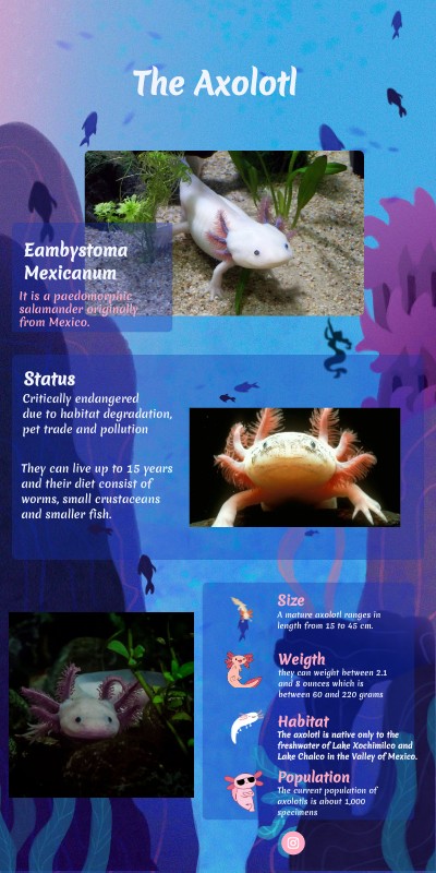 The axolotl is native only to the freshwater of Lake Xochimilco and Lake Chalco in the Valley of Mexico.
