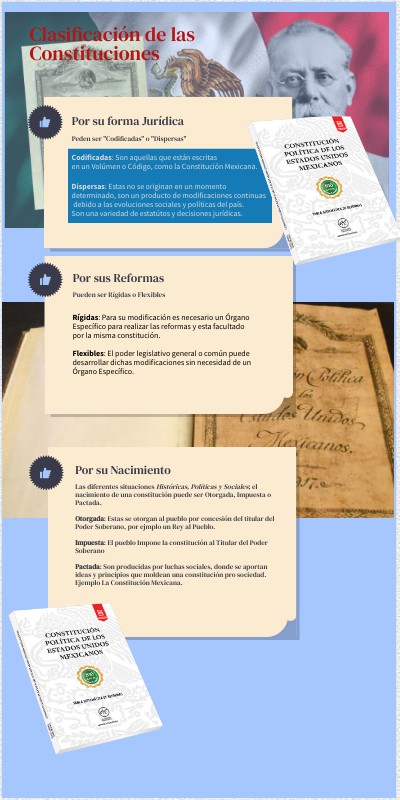 Codificadas: Son aquellas que están escritas en un Volúmen o Código, como la Constitución Mexicana.