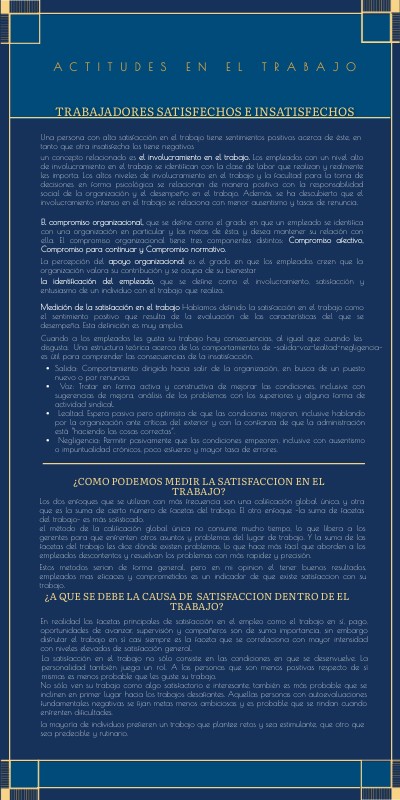 Una persona con alta satisfacción en el trabajo tiene sentimientos positivos acerca de éste, en tanto que otra insatisfecha los tiene negativos