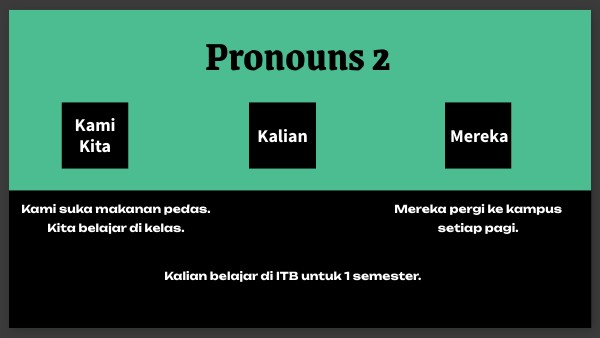 Kami suka makanan pedas. Kita belajar di kelas.