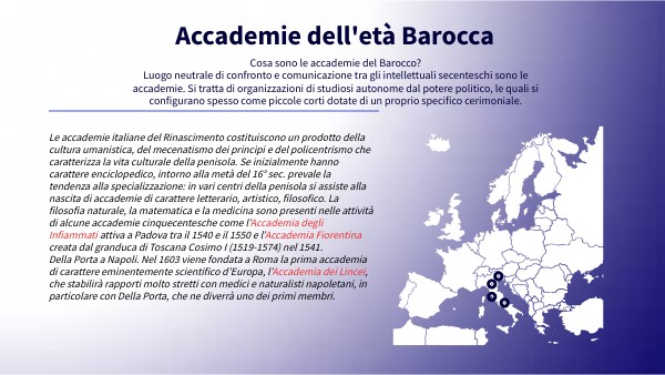 Cosa sono le accademie del Barocco? Luogo neutrale di confronto e comunicazione tra gli intellettuali secenteschi sono le accademie. Si tratta di organizzazioni di studiosi autonome dal potere politico, le quali si configurano spesso come piccole corti dotate di un proprio specifico cerimoniale.