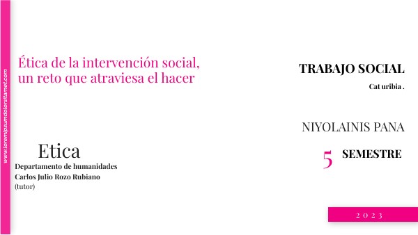 Los elementos éticos que aportaría como profesional en trabajo social, sería la de aplicar los valores deontológicos y cumplir con el código de ética profesional, ya que estos nos ayudaran en nuestro quehacer, tanto en los procedimientos como en las destrezas y la organización de las acciones, de las diferentes técnicas, puesto que las acciones están en total relación con las comprensiones, los principios y los propósitos. Siendo esto de gran ayuda e importancia, para cuando se realice una intervención social desde las realidades de los usuarios o clientes, se cree un nivel de confianza, donde se sientan cómodos de expresar teniendo la seguridad del derecho de confidencialidad, y más en nuestro contexto territorial, que la mayoría de los indígenas wayuu, por usos y costumbres de la cultura se les dificulta expresar cualquier tipo de sentimientos emociones o situación.