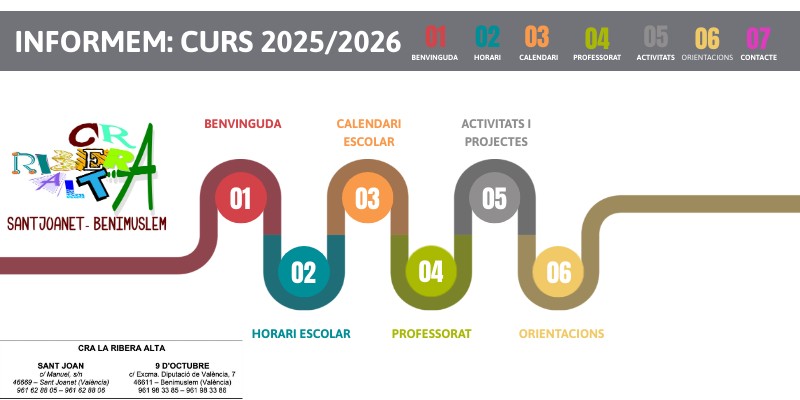 - Dia de la Pau/Arbre (30/01) - Carnestoltes - Benimuslem (12/02/26) - (vesprada) - Falles (16/03/26) - Setmana cultural (30-01/04) - Eixida 2n Trimestre - Teatre l'Horta (19/01/26)