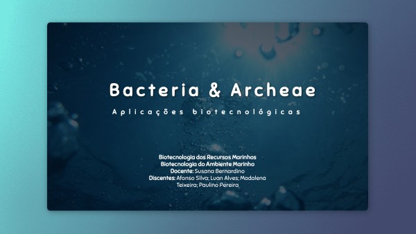 Os ambientes marinhos hospedam formas únicas de vida microbianas, incluindo bactérias e archaeas, muitas delas extremófilas que sobrevivem em condições extremas devido às suas estratégias de adaptação e capacidade de produzir metabolitos secundários ou enzimas de interesse biotecnológico.