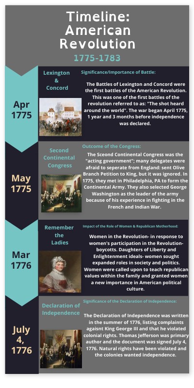 Women in the Revolution- in response to women's participation in the Revolution- boycotts. Daughters of Liberty and Enlightenment ideals- women sought expanded roles in society and politics. Women were called upon to teach republican values within the family and granted women a new importance in American political culture.