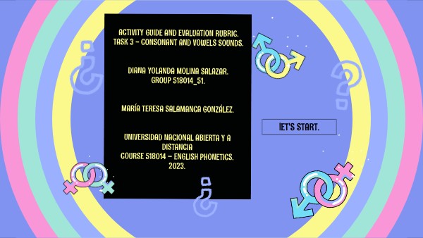 Activity Guide and Evaluation Rubric. Task 3 - CONSONANT AND VOWELS SOUNDS. Diana Yolanda Molina Salazar. Group 518014_51. María Teresa Salamanca González. Universidad Nacional Abierta y a Distancia Course 518014 – English Phonetics. 2023.