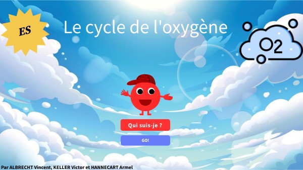 Bonjour, je suis Paul-Eugène ; je suis une molécule d'oxygène et nous allons étudier mon cycle de vie ! Certaines fois je peux me rejoindre à une autre molécule d'oxygène et alors former du dioxygène !