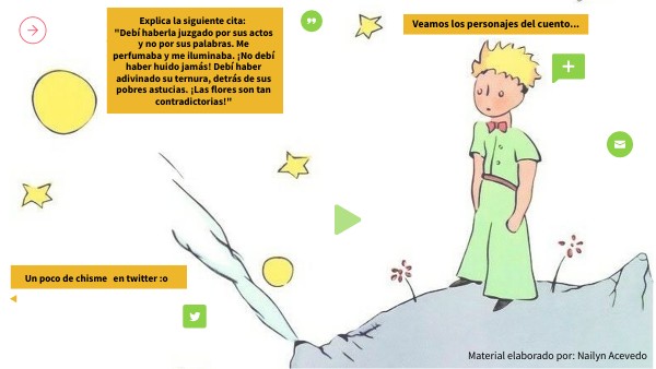 Observe los elementos de la imagen interactiva. Conteste las preguntas en su cuaderno. Interactúe con todos los elementos de la imagen, incluyendo el juego en línea sobre los diversos elementos presentes en el texto. Al final, deberá compartir con sus compañeros sus respuestas.