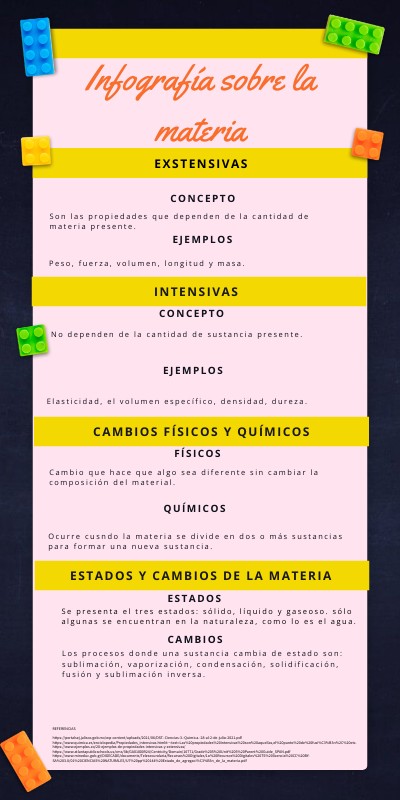 REFERENCIAS https://portalsej.jalisco.gob.mx/wp-content/uploads/2021/06/DST.-Ciencias-3.-Quimica.-28-al-2-de-julio-2021.pdf https://www.quimica.es/enciclopedia/Propiedades_intensivas.html#:~:text=Las%20propiedades%20intensivas%20son%20aquellas,el%20punto%20de%20fusi%C3%B3n%2C%20etc. https://www.ejemplos.co/20-ejemplos-de-propiedades-intensivas-y-extensivas/ https://www.atlantapublicschools.us/cms/lib/GA01000924/Centricity/Domain/10771/Grade%205%20Unit%205%20Parent%20Guide_SPAN.pdf https://www.mineduc.gob.gt/DIGECADE/documents/Telesecundaria/Recursos%20Digitales/1o%20Recursos%20Digitales%20TS%20licencia%20CC%20BY-SA%203.0/01%20CIENCIAS%20NATURALES/U7%20pp%20144%20Estado_de_agregaci%C3%B3n_de_la_materia.pdf