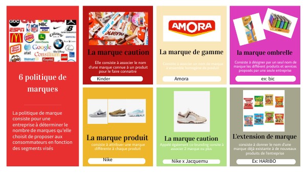La politique de marque consiste pour une entreprise à déterminer le nombre de marques qu'elle choisit de proposer aux consommateurs en fonction des segments visés