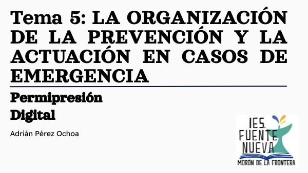 Tema 5: LA ORGANIZACIÓN DE LA PREVENCIÓN Y LA ACTUACIÓN EN CASOS DE EMERGENCIA