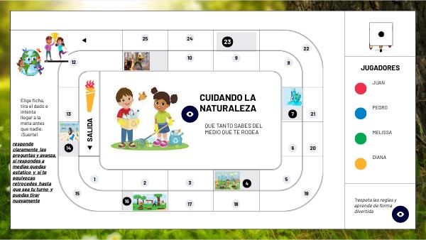 responde claramente las preguntas y avanza, si respondes a medias quedas estatico y si te equivocas retrocedes hasta que sea tu turno y puedas tirar nuevamente