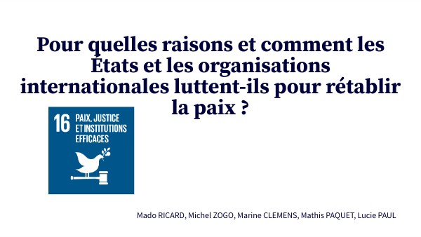 https://www.agenda-2030.fr/17-objectifs-de-developpement-durable/article/odd16-promouvoir-l-avenement-de-societes-pacifiques-et-ouvertes-aux-fins-du? https://www.cairn.info/revue-de-l-ocde-sur-le-developpement-2007-3-page-153.htm https://www.cairn.info/revue-internationale-et-strategique-2007-2-page-9.htm https://www.seine-maritime.gouv.fr/Actions-de-l-Etat/Securite-et-Defense/Securite-publique/Plan-Vigipirate/Adaptation-de-la-posture-Vigipirate-urgence-attentat https://www.justice.gouv.fr/actualites/actualite/projet-loi-confiance-linstitution-judiciaire-0 formulaire.defenseurdesdroits.fr www.annuaires.justice.gouv.fr https://www.consilium.europa.eu/fr/policies/rule-of-law/ https://www.defense.gouv.fr/ministere/missions-du-ministere-armees https://www.un.org/fr/our-work/maintain-international-peace-and-security https://fr.wikipedia.org/wiki/Liste_des_guerres_contemporaines https://rsf.org/fr/1-668-journalistes-tu%C3%A9s-en-20-ans-soit-80-par-en-moyenne-2003-2022