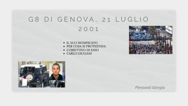 Durante il G8 di Genova ci furono tanti feriti e un morto, Carlo Giuliani; è stato un manifestante che prese parte alle proteste del movimento no-global, venendo ucciso da un carabiniere. In relazione all'uccisione, il carabiniere ausiliario Mario Placanica è stato indagato per omicidio e poi prosciolto dalla giustizia italiana e da quella europea avendo agito per legittima difesa contro Giuliani che, a volto coperto, tentava di colpirlo con un estintore.