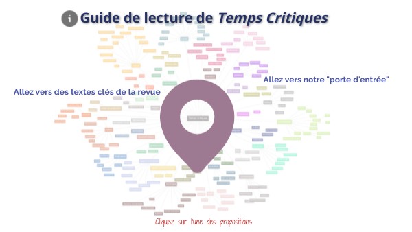 Dans un échange datant de 2012 la question de la « porte d’entrée », c’est à dire de ce que l’on peut lire en premier lieu pour aborder les analyses développées par la revue Temps Critiques était posée. Le blog en fut une première réponse en regroupant divers correspondances et textes « intermédiaires ». Dans la correspondance d'origine (cliquez ici pour le billet en entier) se trouve citée des points importants de le revue. Nous les avons réunis ci-dessous en renvoyant à chaque fois vers un petit résumé sur chaque titre et des liens sur les articles adéquats du site et du blog :