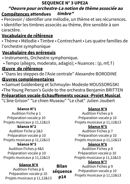 SEQUENCE N° 3 UPE2A "Oeuvre pour orchestre-La notion de thème associée au timbre"