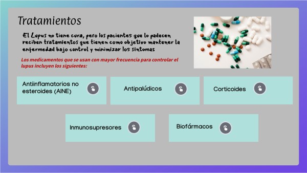 El Lupus no tiene cura, pero los pacientes que lo padecen reciben tratamientos que tienen como objetivo mantener la enfermedad bajo control y minimizar los sintomas