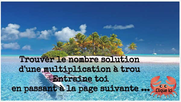 Trouver le nombre solution d'une multiplication à trou Entraîne toi en passant à la page suivante ...