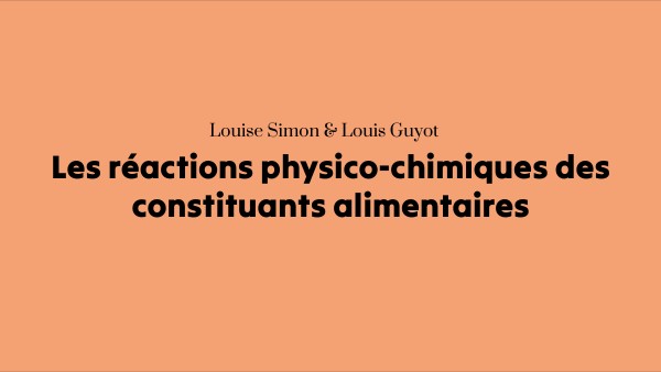 En cuisine, une transformation physico-chimique fait référence à un processus qui modifie la structure, la composition ou les propriétés des ingrédients alimentaires par des réactions physiques et chimiques. Changement physique : Se produit lorsque seules les caractéristiques physiques sont modifiées . Exemples : Couper une carotte, écraser les pommes de terre ou geler l'eau . Changements chimiques : Se produisent lorsqu'une action est produite qui entraîne une nouvelle substance et/ou structure de l’aliment . Exemples : Faire du pain avec des levures , cuire des œufs et brûler un steak . Ils existe plusieurs déclencheurs physico-chimique qui vont amener à une modification d’un aliment , c’est déclencheurs sont de plusieurs origines :