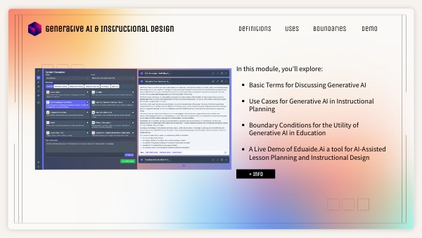 - A Live Demo of Eduaide.Ai a tool for AI-Assisted Lesson Planning and Instructional Design