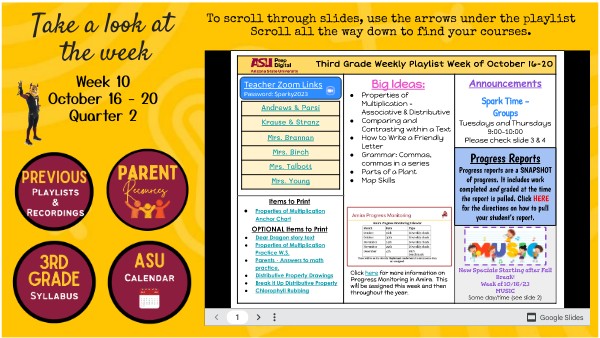 To scroll through slides, use the arrows under the playlist Scroll all the way down to find your courses.