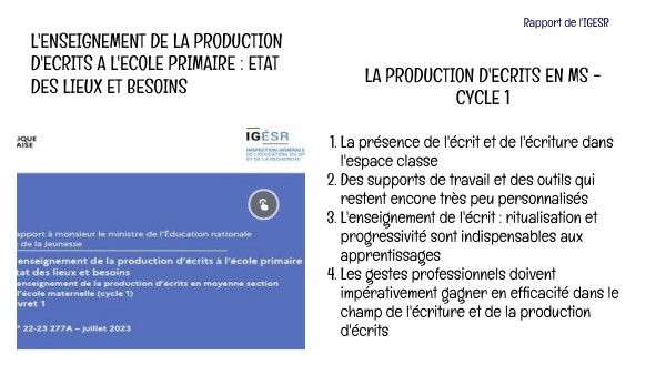 RAPPORT IGESR - LA PRODUCTION D'ECRITS EN MS - CYCLE 1