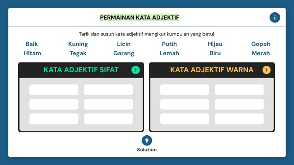 Tarik dan susun kata adjektif mengikut kumpulan yang betul