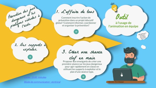 Proposer aux enseigants de créer une première séance sur les jeux dangereux pour agir rapidement en classe en utilisant les supports à exploiter et le plan d'une séance type.