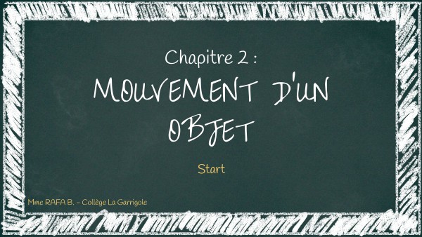 La …………………………………… est un domaine de la physique qui s’intéresse au mouvement des objets. Lorsqu’on ………………………… un mouvement, il est nécessaire d’indiquer …………………………………………………. La relativité du mouvement correspond au fait qu’un objet peut être à la fois …………………… (au repos) ou ………………………………….. selon le point de vue de l’observateur. Le mouvement est …………………… : il dépend de « l’objet » ………………………………………………………………………. « L’objet » dont on étudie le mouvement est appelé le ……………………………….. « L’objet » par rapport auquel on étudie le mouvement est appelé le …………………………...